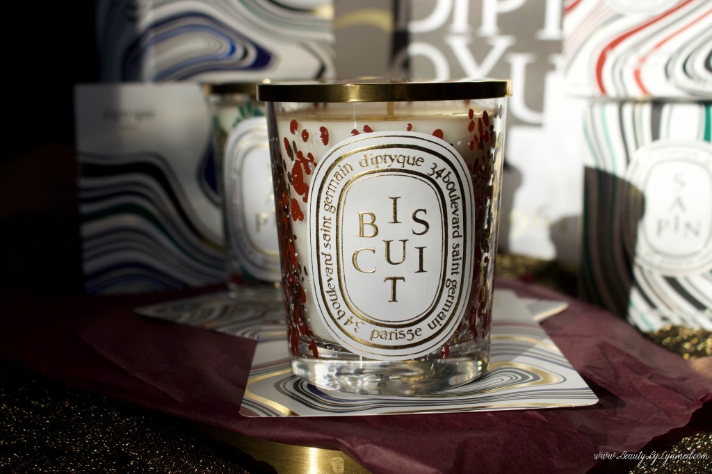 Le packaging est sublime, comme d’habitude. Le verre à bougie est moucheté d’or véritable et de rouge. La bougie est également vendue avec un couvercle doré pour protéger sa cire de la poussière et préserver toute la puissance de la fragrance. Un véritable objet de décoration ! Biscuit est sans aucun doute mon coup de cœur, elle est tellement addictive que je pense déjà en reprendre une pour que son parfum m’accompagne tout l’hiver.